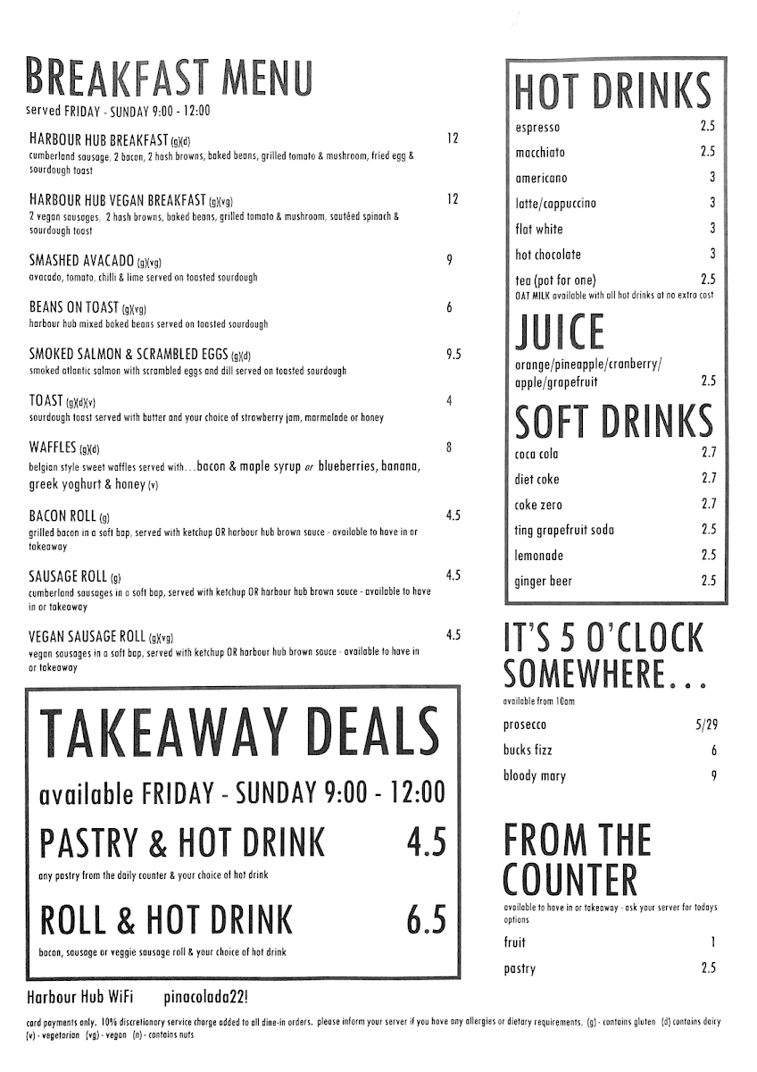 Review of Harbour Hub Bristol Menu